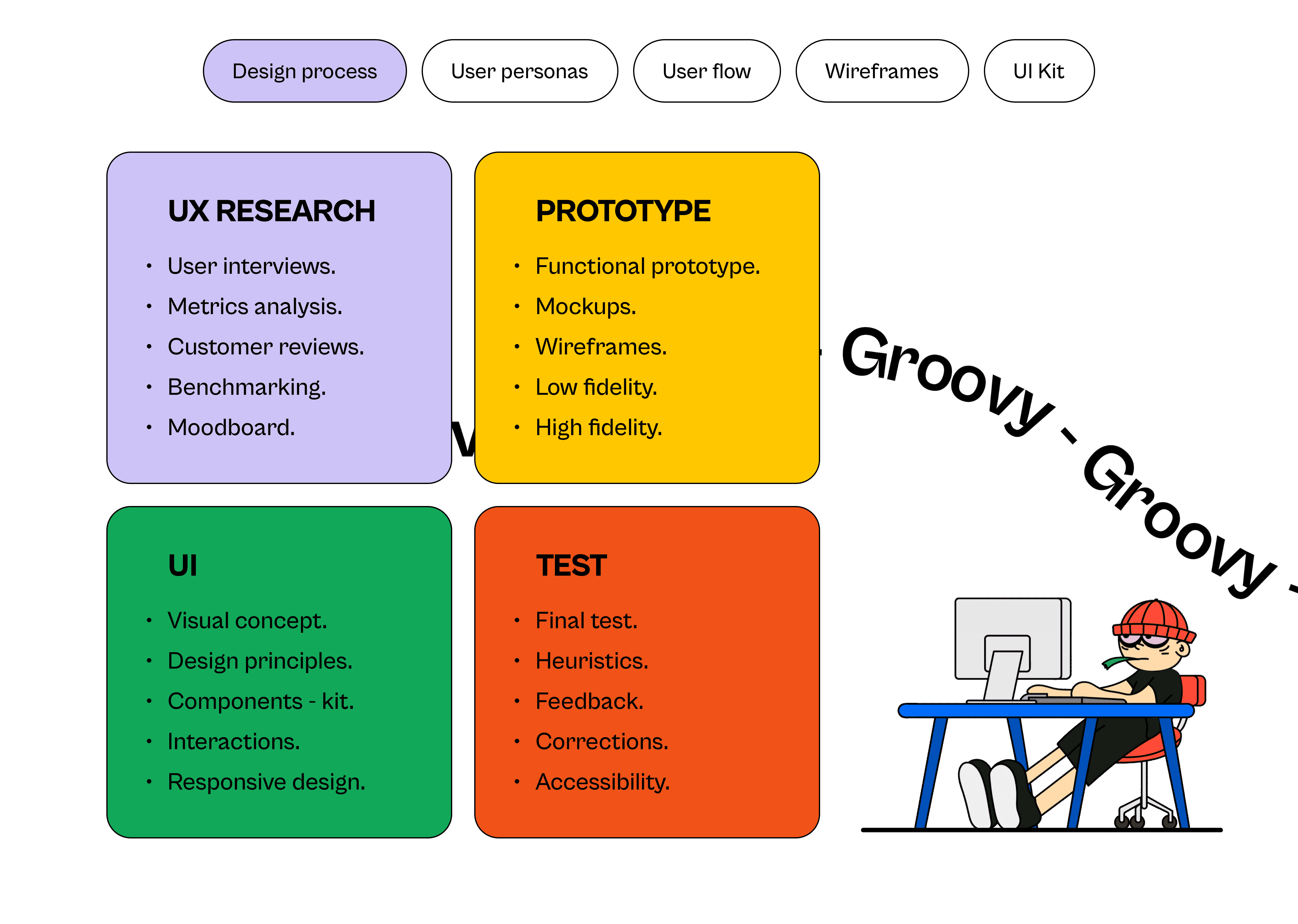 — Valor para el usuario y el cliente: Una experiencia digital memorable gracias a una interfaz llamativa alineada con la identidad de Groovy.