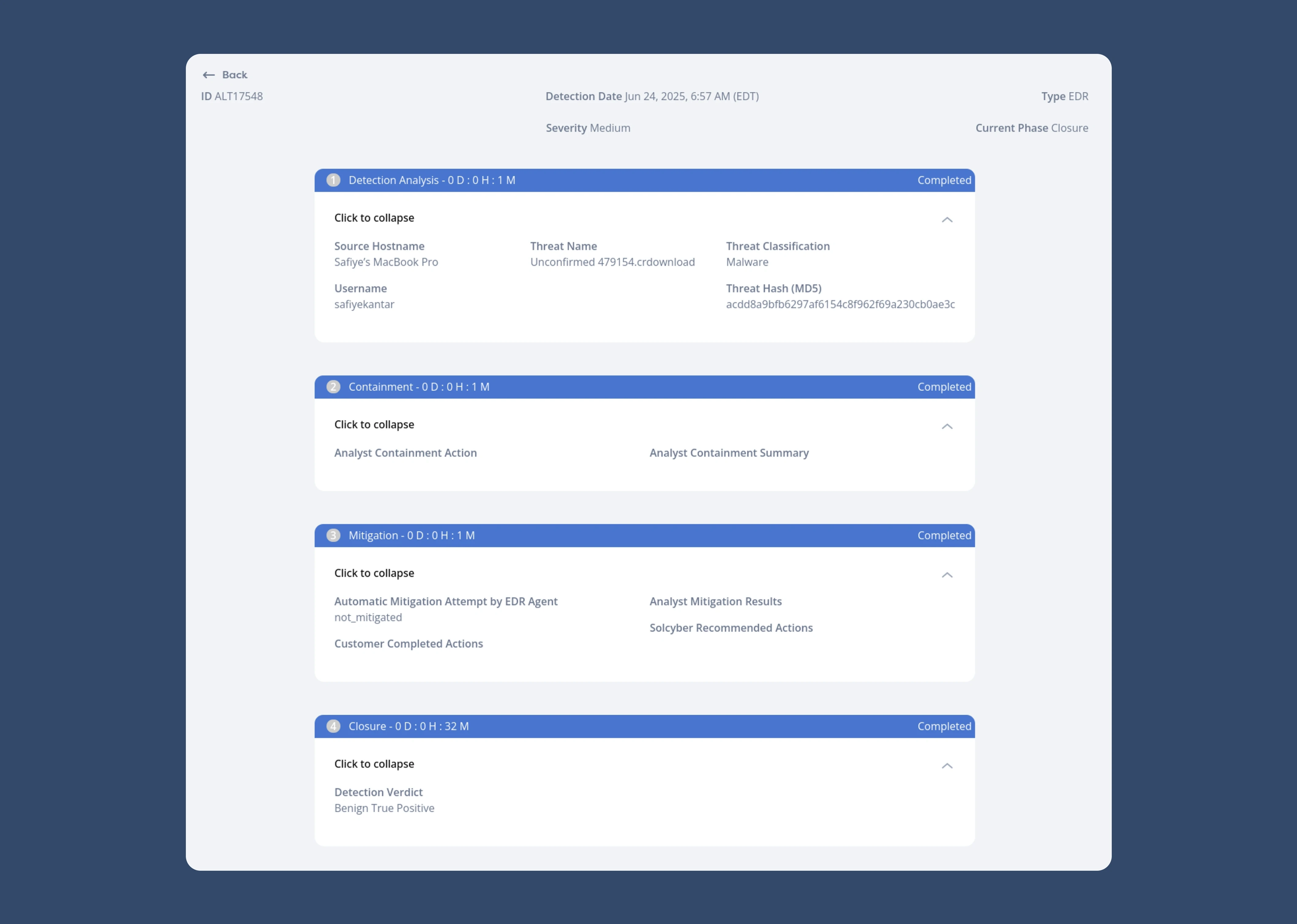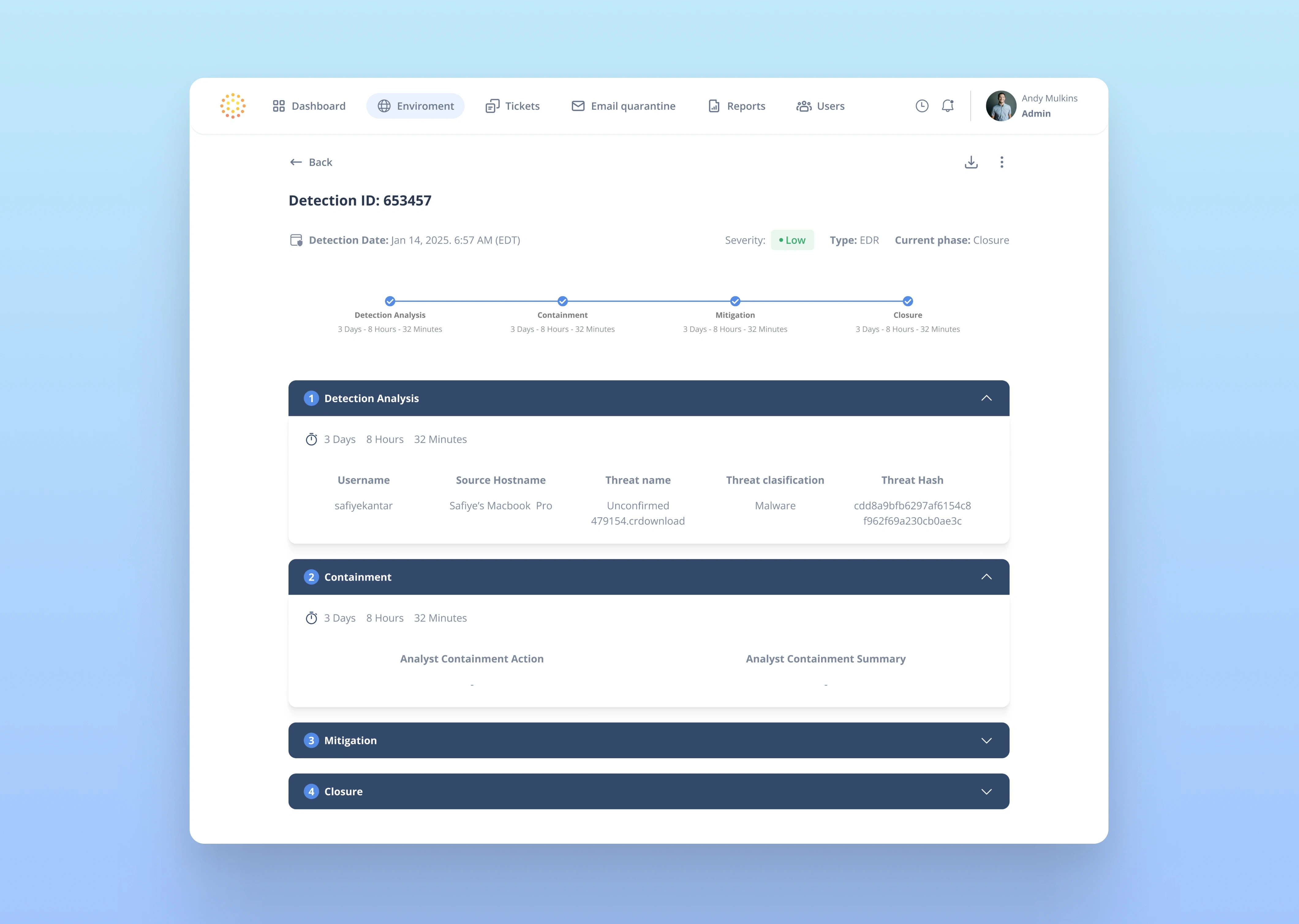 The redesigned dashboard delivers a clearer and more structured experience that supports analysts in understanding, prioritizing, and acting on security incidents more efficiently. The interface now emphasizes clarity, consistency, and usability while maintaining the depth required for cybersecurity operations.